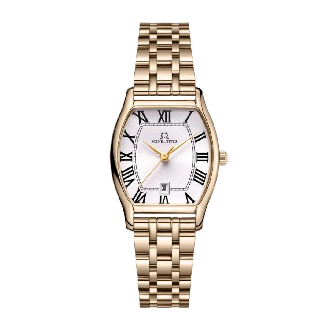 Solvil et Titus (โซวิล เอ ติตัส) นาฬิกาผู้หญิง Barista 3 เข็ม วันที่ ระบบควอตซ์ สายสเตนเลสสตีล ขนาดตัวเรือน 24.7 มม. (W06-02825-020)