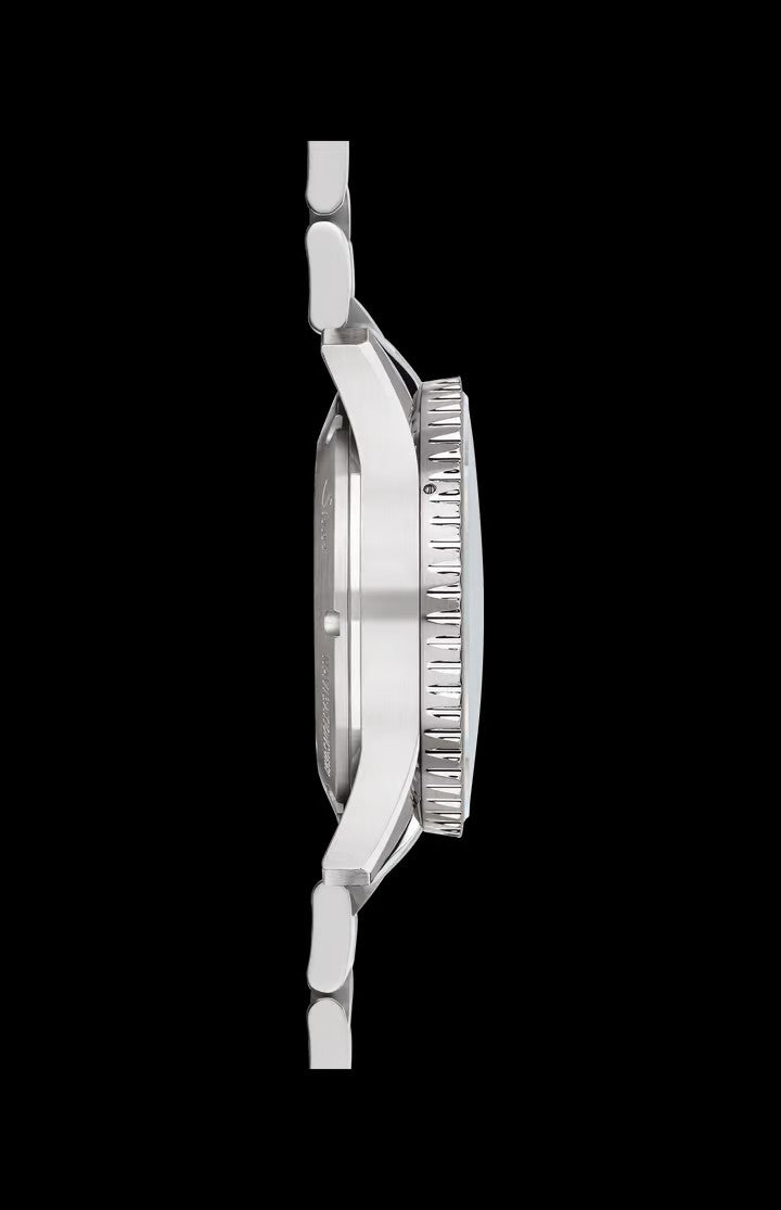 ขอบหน้าปัดซึ่งควบคุมการทำงานด้วยการเลื่อนตามเส้นรอบวงด้านนอก แสดงให้เห็นถึงความเที่ยงตรงทางวิศวกรรมในระดับสูงสุด ตัวเรือนยังกันน้ำได้ลึกถึง 20 บาร์ ด้วยเทคโนโลยี DSP Technology ตอกย้ำความเชี่ยวชาญทางเทคนิคที่สั่งสมมานานหลายทศวรรษ