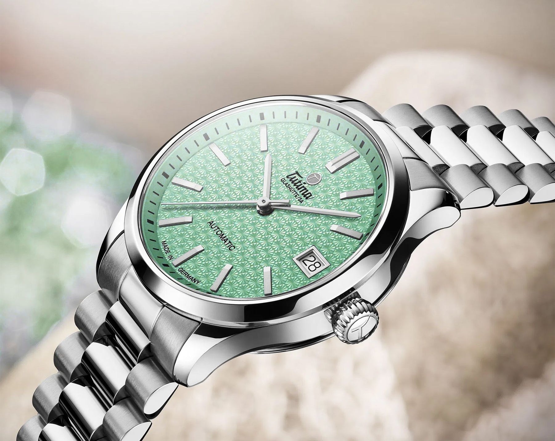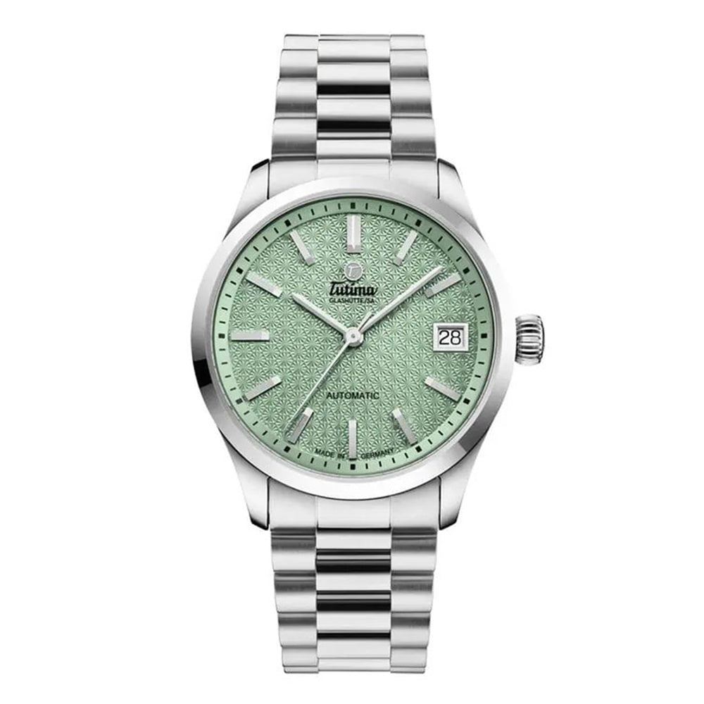 การผสมผสานอย่างลงตัวระหว่างความสง่างามแบบผู้หญิงกับดีไซน์สมัยใหม่ โดดเด่นด้วยกลไกอัตโนมัติอันเป็นเอกลักษณ์ของ Tutima และหน้าปัดลวดลายหกเหลี่ยมอันประณีต